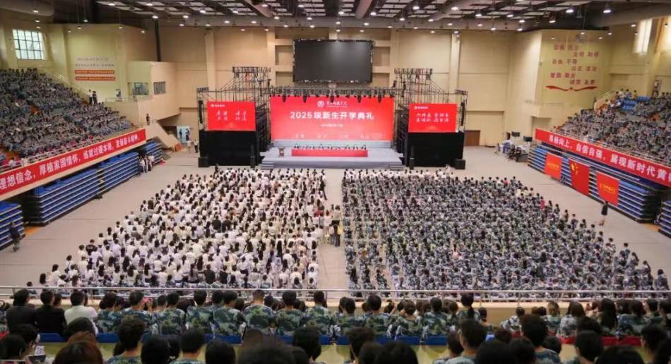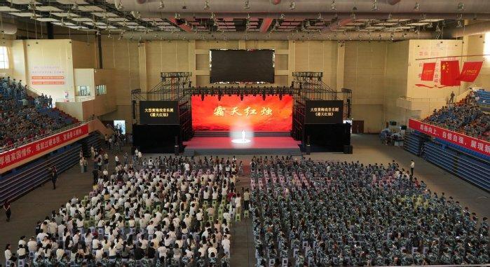 开学典礼后,6542名新生观看了大型原创黄梅戏音乐剧《霜天红烛》,同上第一堂“大思政”课。